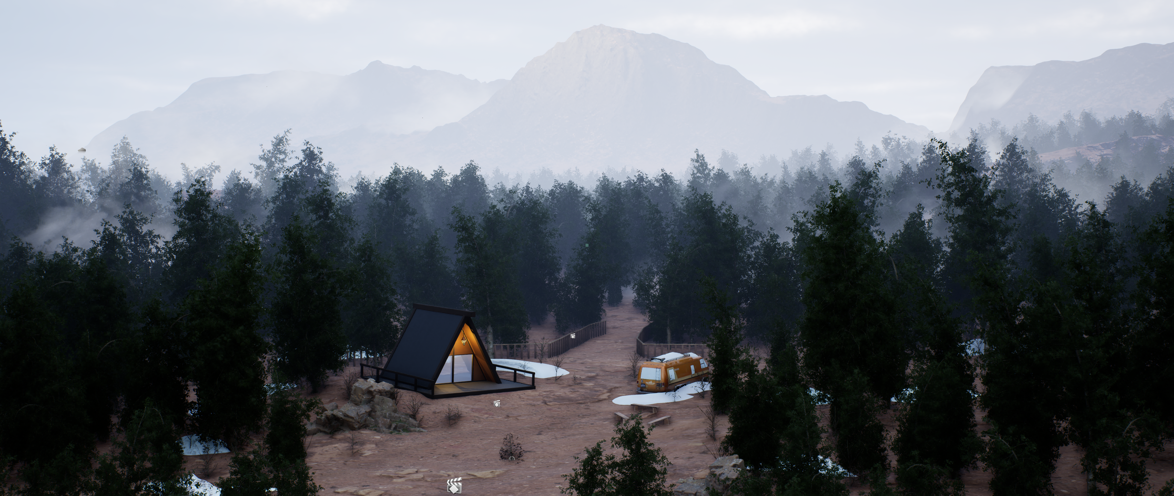 environment design and lighting using unreal engine utilizing tools such as landscape material and easysnow.
